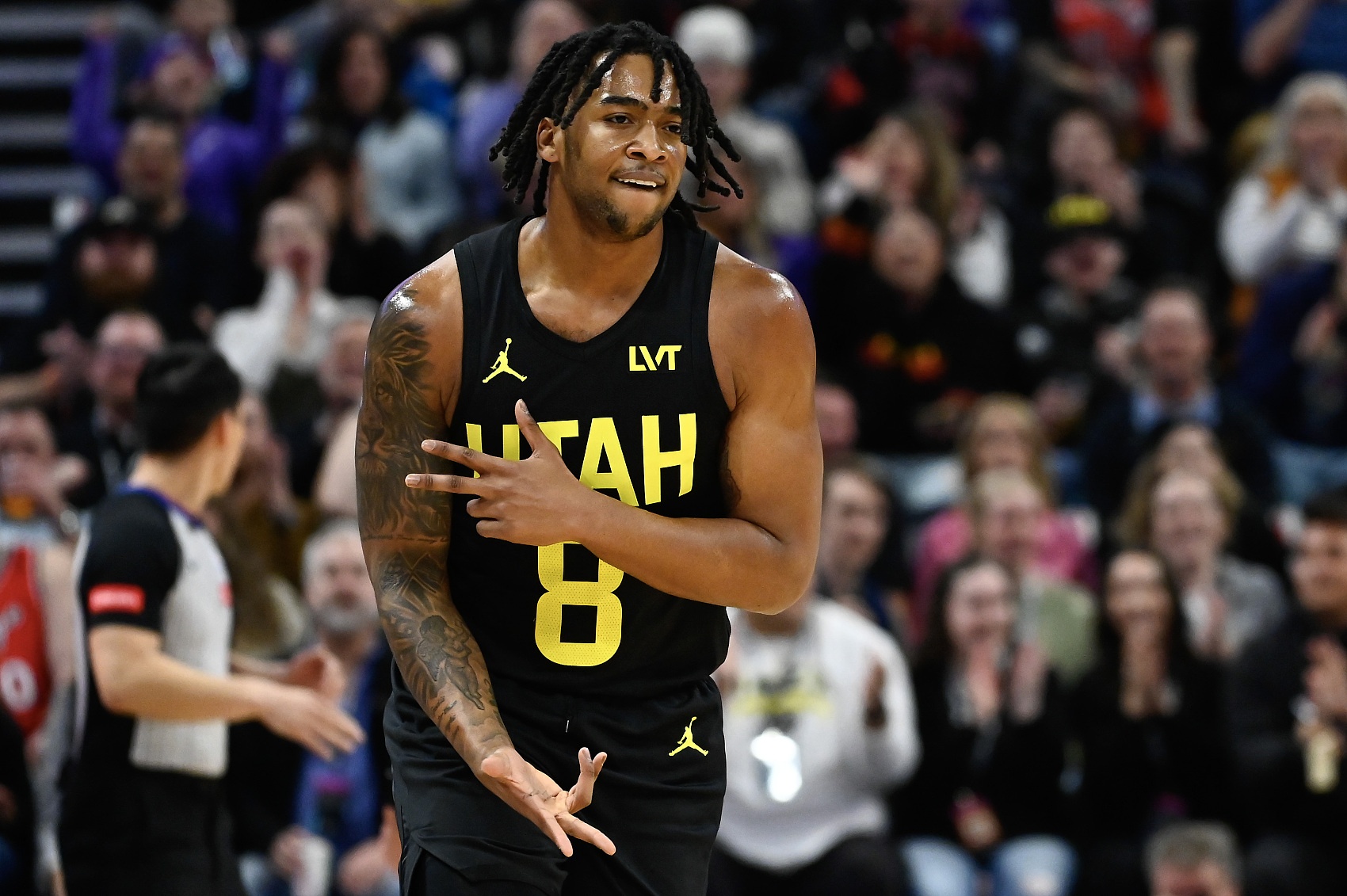 上半场,爵士球员森萨博表现出色,替补十分高效,在不到10分钟的时间里,投篮7中5,三分球3中2,拿到12分5篮板1助攻的数据,正负值+19。