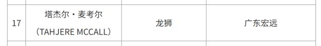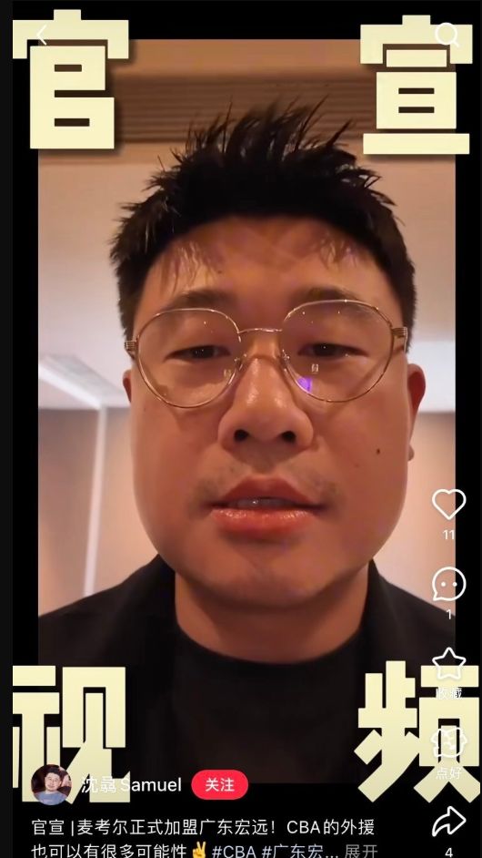 9月19日,SYD经纪公司的创始人沈骉发布视频,宣布其公司代理的外援塔杰尔·麦考尔正式加盟广东宏远男篮。这则消息并不令人意外,但让广东宏远男篮的球迷服下了定心丸,这次是确定要加盟了。