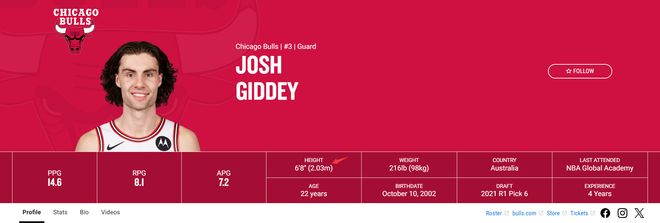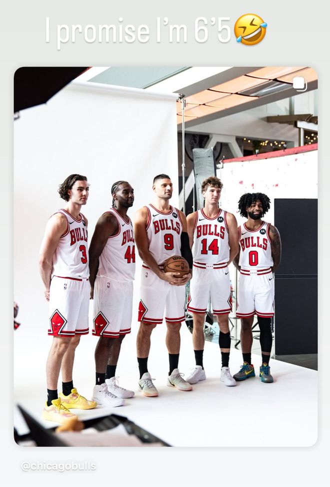 北京时间9月30日是NBA媒体日,芝加哥公牛队并不是流量球队所以没什么曝光率,科比-怀特的一则INS却引发了美国球迷的讨论,那就是定妆照合影时怀特说自己有6尺5寸(约1.95米),实际上他的官方身高6尺4(约1.93米)。