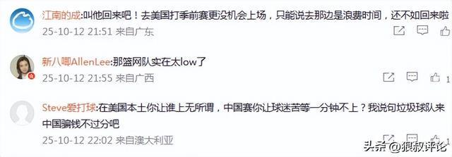 不少球迷对于篮网队的安排表达不满,有球迷吐槽说道:“在美国本土你让谁上无所谓,中国赛你让球迷苦等一分钟不上?我说句垃圾球队来中国骗钱不过分吧”。就这还商业赛也不上中国球员,还谈什么联合培养计划,扯淡,就是哄着中国买单罢了。
