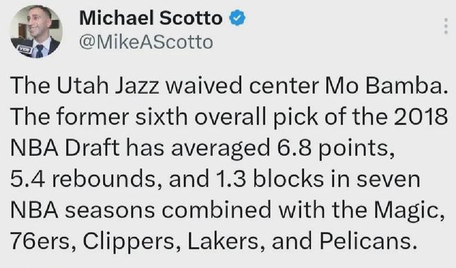 爵士官方宣布:裁掉穆罕默德-班巴。