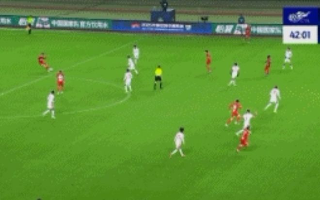 比赛的第42分钟,钟义浩右路斜传,亚泰后卫抢在阿奇姆彭前解围失误,幸好门将反应神速将球挡出底线。