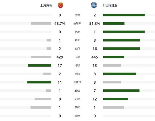 本场比赛上海海港在主场被日本中流球队町田泽维亚完爆,长时间处于被动防守的不利处境之中,整场只完成了一脚中目标的射门,最终0-2输球,亚冠新赛季1平2负一胜难求。