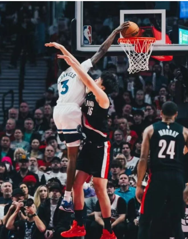 10月23日消息,10月23日结束的NBA常规赛中,开拓者主场以114-118惜败森林狼。本场比赛,杨瀚森上演了NBA首秀,得到2分1篮板1犯规,赛后,杨瀚森接受了记者的采访谈到被迈克-丹尼尔斯隔扣。