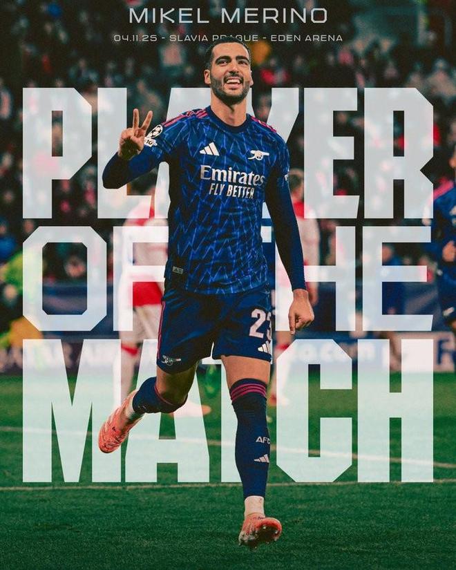 - 英超 | 梅开二度,梅里诺当选与布拉格斯拉维亚一役枪手队内最佳球员