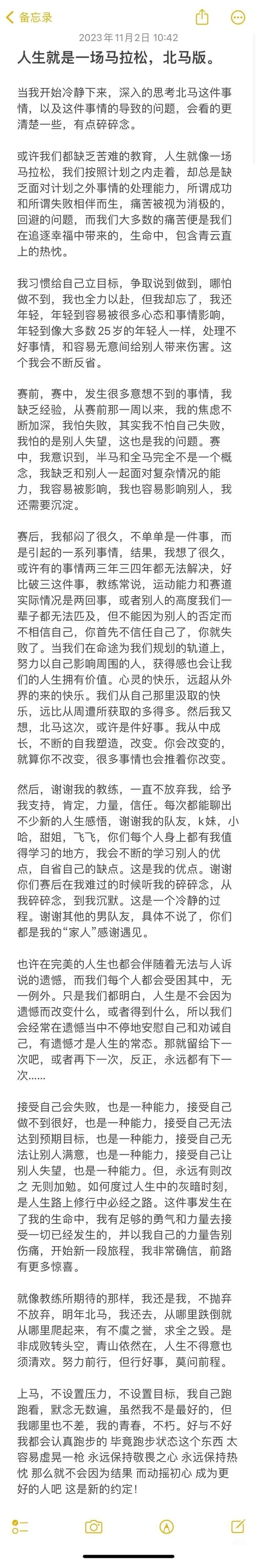 2023年的北马,是我的首马。我在赛前就喊自己要破三。但最终成了一个笑话。