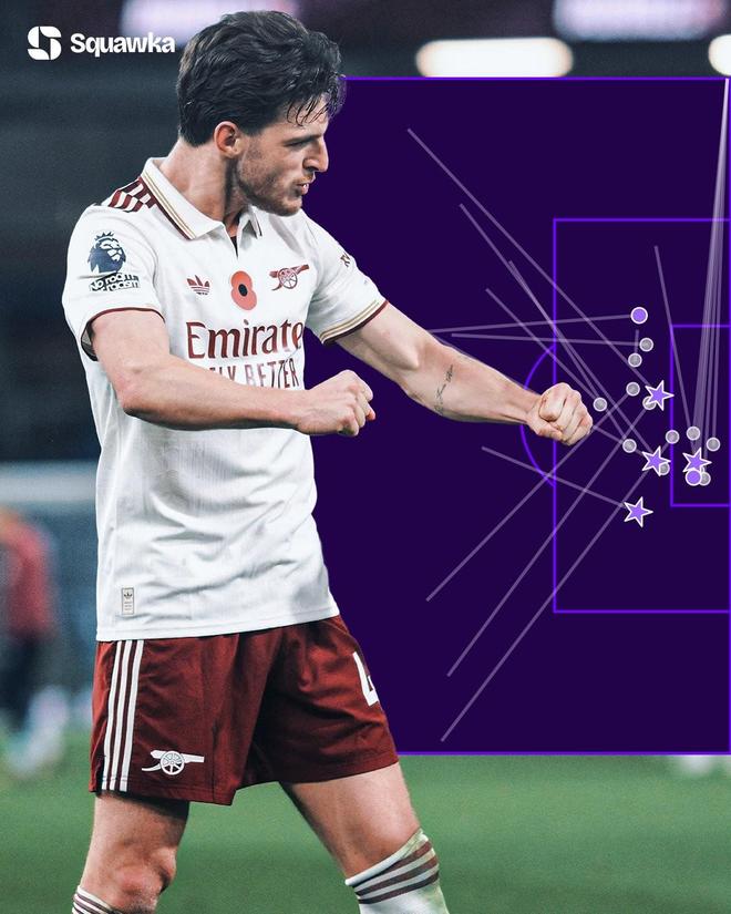 - 英超 | 赖斯在2025年创造23次重大机会,英超球员同期最多