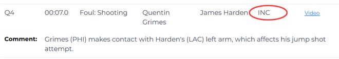 第三次漏判,也是最重要的漏判。距离比赛结束还有7秒时,快船落后两分,哈登三分出手被格雷姆斯打到手肘,但当时裁判没有吹犯规,赛后还说是正常干扰。但官方裁判报告指出,格雷姆斯确实打到哈登手臂,影响了他的跳投,该判防守犯规,这本该是一次三分罚球的机会。快船吃亏,76人获利。
