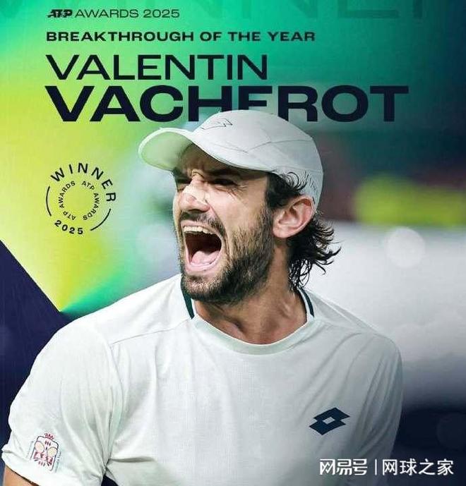 我们再来关注ATP年度奖项评选。北京时间昨晚,ATP官宣,在上海大师赛上勇夺冠军的摩纳哥球员瓦舍罗击败德雷珀、丰塞卡、门希克等竞争对手,荣获2025年度ATP突破球员大奖。在今年的上海滩,瓦舍罗从资格赛打起,一共连胜9场,以黑马之姿夺得职业生涯巡回赛男单首冠,也成为首位夺得大师赛单打冠军的摩纳哥人,惊艳男子网坛。