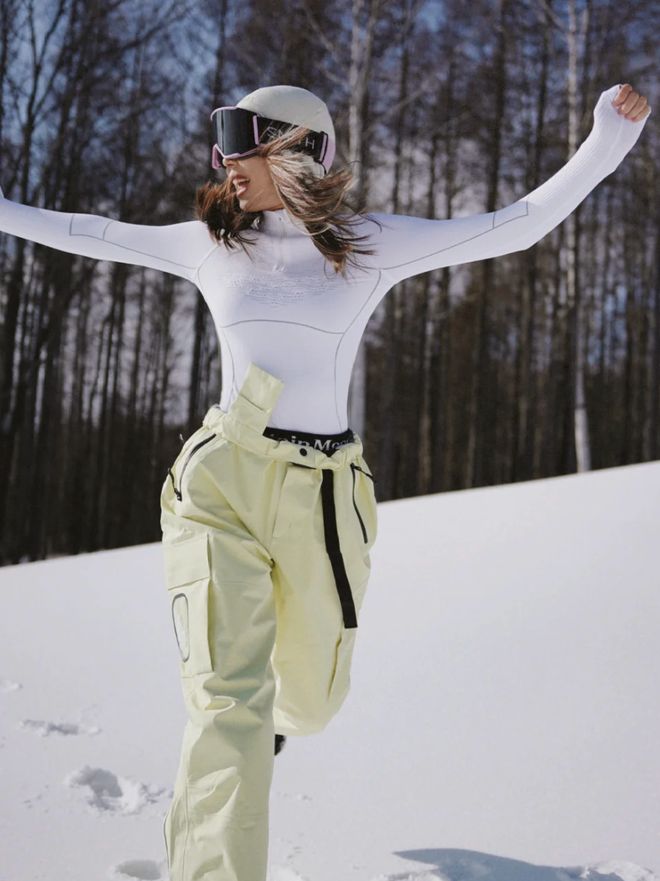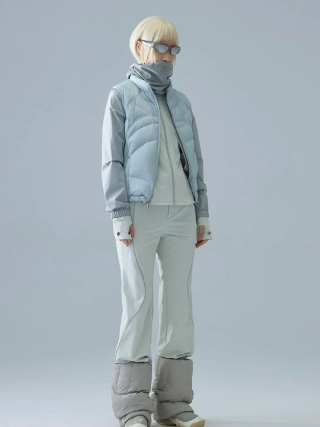 在“轻装滑”消费趋势下,不少品牌也开始改变产品策略,推动着产品走向更广阔的滑雪消费场景。以雪服为例,以往面料追求极致的防水、防风与耐磨,往往在舒适性、轻便度和美观上有所妥协。如今,更多品牌开始采用更轻盈、柔软且富有弹性的新型功能面料,在肌理与质感上亦更趋自然,以此支撑“轻量化雪服”所倡导的“功能与美学平衡”。