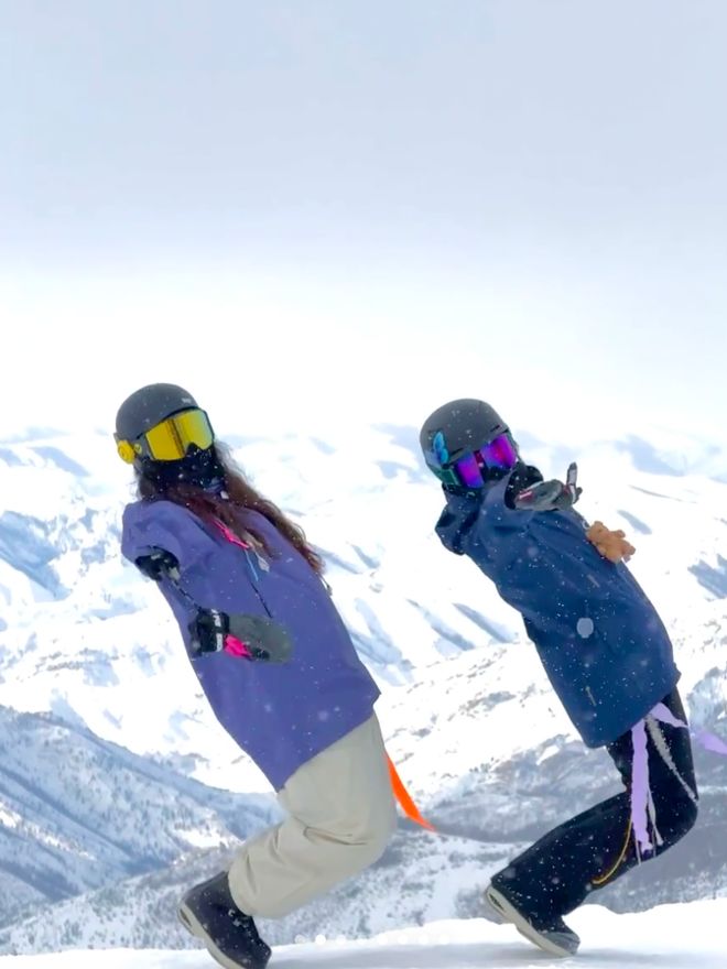 有人在雪场拍出了充满冰雪破碎感的“人生大片”,但镜头一转,背后是闺蜜用尽全力刨雪的狼狈;